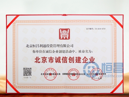 恒昌四度榮膺“北京市誠信創(chuàng)建企業(yè)”稱號