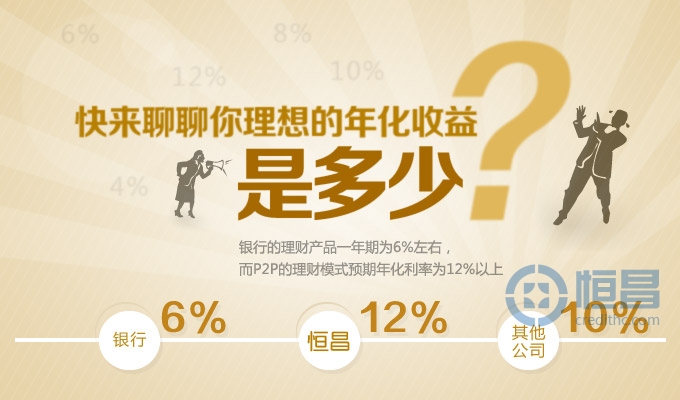 現(xiàn)在銀行一年期為6%左右,而P2P的出借模式預(yù)期年化利率為12%以上,快來(lái)聊聊你理想的年化收益是多少?