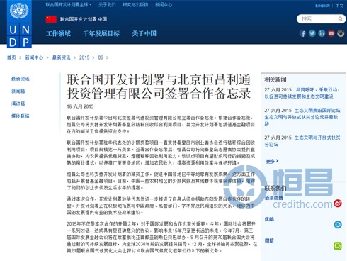 聯合國開發計劃署官網發布與恒昌戰略...