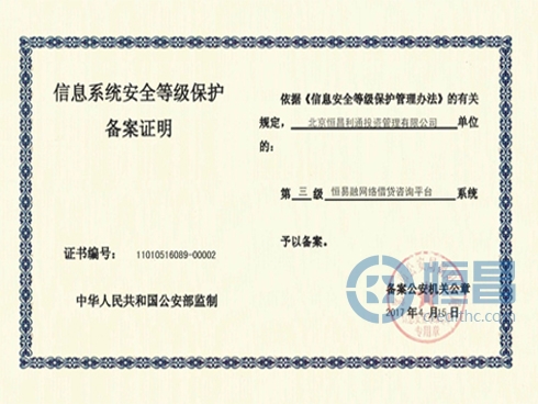 近日,恒昌旗下的恒易融平臺獲得公安部核準頒發的“國家信息系統安全等級保護三級備案”證明,成為在網絡信息安全方面完成信息系統定級備案的平臺之一。恒昌獲得...