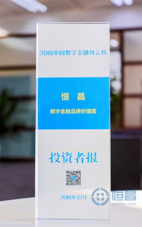 恒昌榮膺 “2018數字金融品牌價值獎”