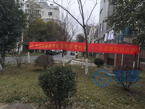 為了普及財(cái)富管理知識(shí),2015年1月13日下午14時(shí),恒昌匯財(cái)泰州分公司在城南片區(qū)鳳凰街道群眾活動(dòng)中心舉辦了“走進(jìn)社區(qū)——財(cái)富管理知識(shí)公益講座”活動(dòng)。