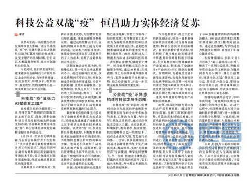 科技公益雙戰(zhàn)“疫” 恒昌助力實(shí)體經(jīng)濟(jì)復(fù)蘇